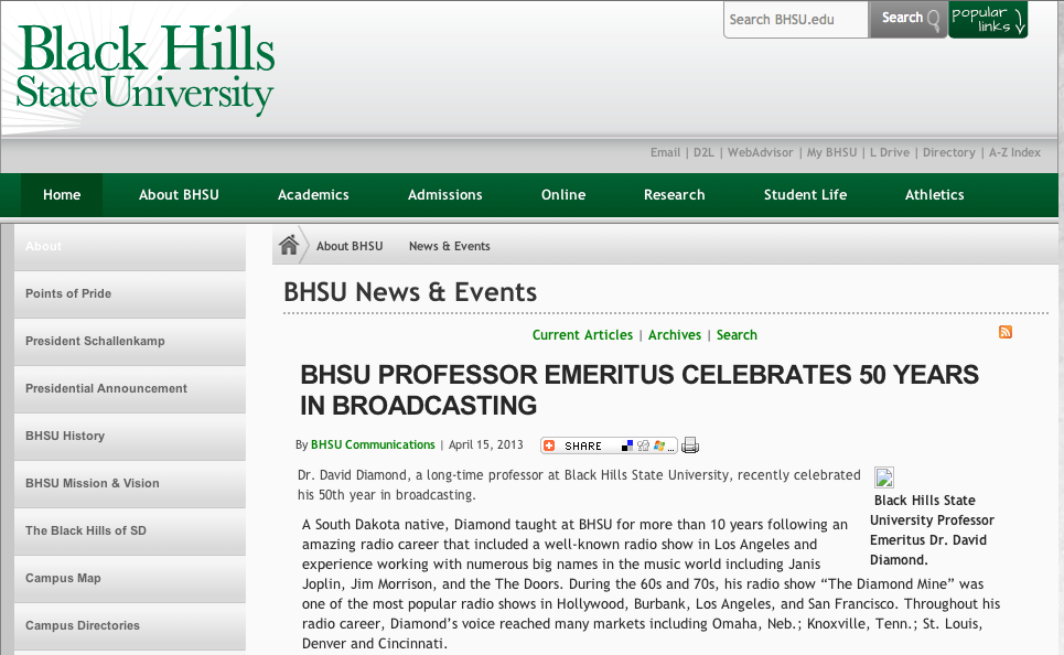 «BHSU: Professor Emeritus Dave Diamond Celebrates 50 Years in Broadcasting