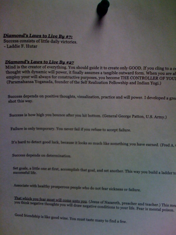 Dave Diamond: Mantras, Quotes, Philosophies, Rules, and Laws for healthy mental livingAll of Diamond’s Laws to Live By: